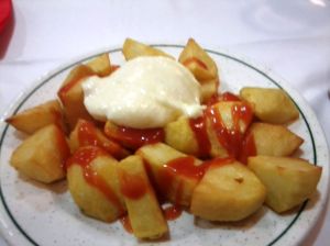 who has visited SPAIN and not tried this at the local food eateries???? if u havent had PATATAS BRAVAS u havent been to SPAIN!!! with a glass of chilled beer, or some SANGRIA……this is the ULTIMATE TAPA… i will teach u how to make it