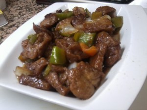 Sautee the marinated seitan in a wok and then add green peppers and onions…