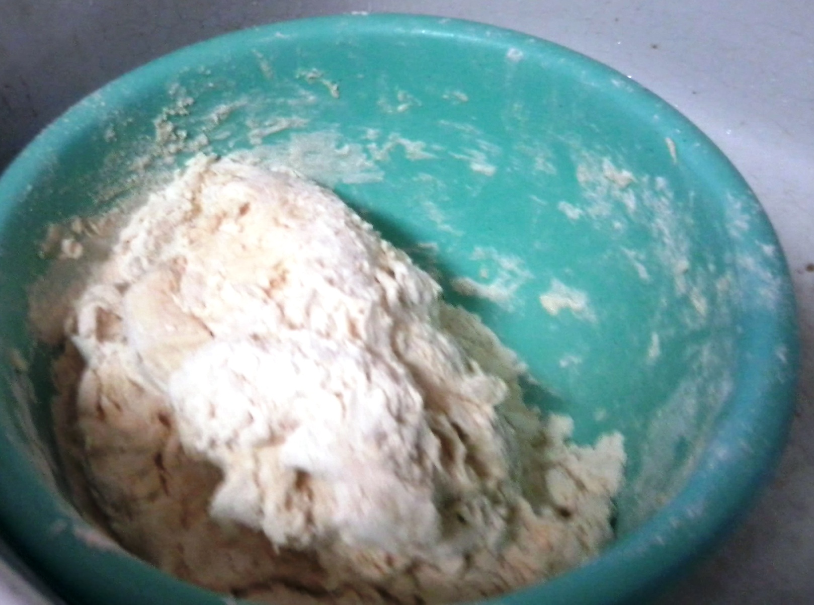 Take 1 kilo of white flour with 2 teaspoons of salt and make a dough with water.