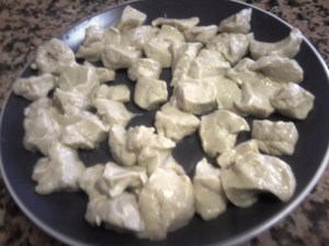 Marinate it the way you want…i marinated it chinese style with sweet soya sauce, salt, ginger garlic paste, sesame oil, light soya sauce and white pepper