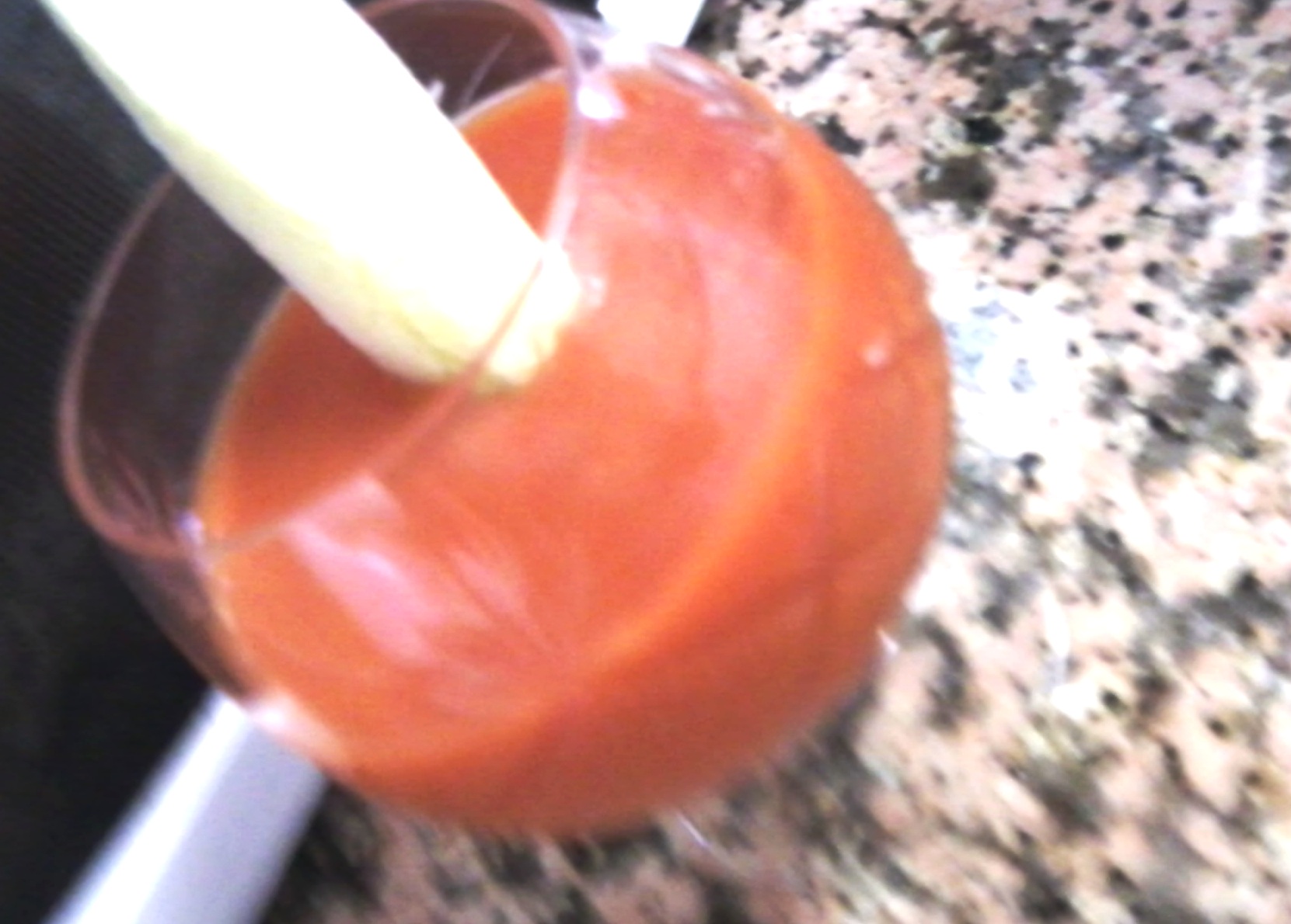 Blend together all the vegetables with the salt and the mineral water till very well blended.