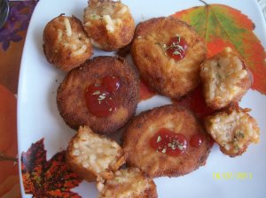Roll in breadcrumbs and deep fry in hot oil til golden