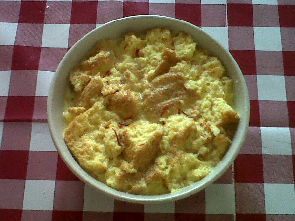 The soaked cake pieces with the saffron white chocolate cream on it..all soaking well. Refrigerate for a few hours till chilled and the cake will take shape