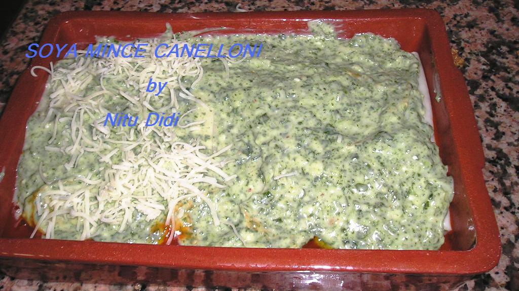 Canelloni stuffed with soya mince and then covered in a spinach sauce!! How healthy can this be??? The pics are courtesy of my dear friend Dru Daryanani..i dont make this at home cause i have no one to eat it…The recipe is mine…i just needed the pics..and Dru was soo kind to send them to me STEP BY STEP!!!