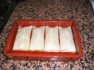 1 packet of canelloni wrappers, boiled