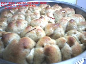 i used the same dough…made small balls and rolled them out..filled them with a tiny piece of cheese and then placed each ball next to each other and bake till done . Meantime make the saffron syrup with 1/2 cup sugar and 1/2 cup water and a good pinch of Nitu Didi Pure Spanish saffron boiled for 6-8 minutes till slightly thick, When the bread is done pour the syrup on the top..YOU CANT IMAGINE HOW AMAZING THIS TASTES 🙂