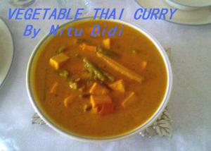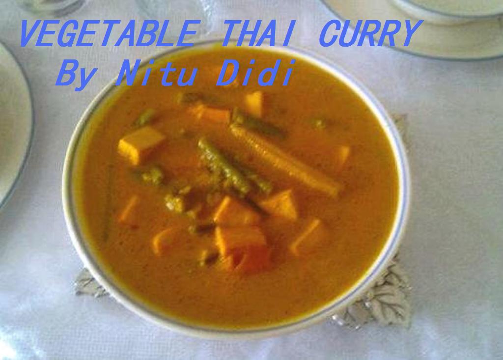 Most of us have our own way of making thai curry..some use the ready made paste, some make their own paste and some just add the powder! Well i am giving u an easy recipe of how to make a nice “different” thai curry. This pic has been taken out by my friend Koshi Chellani as i gave her the recipe on the phone. If you dont have lime grass or lime leaves dont panic… you can still enjoy this curry.
