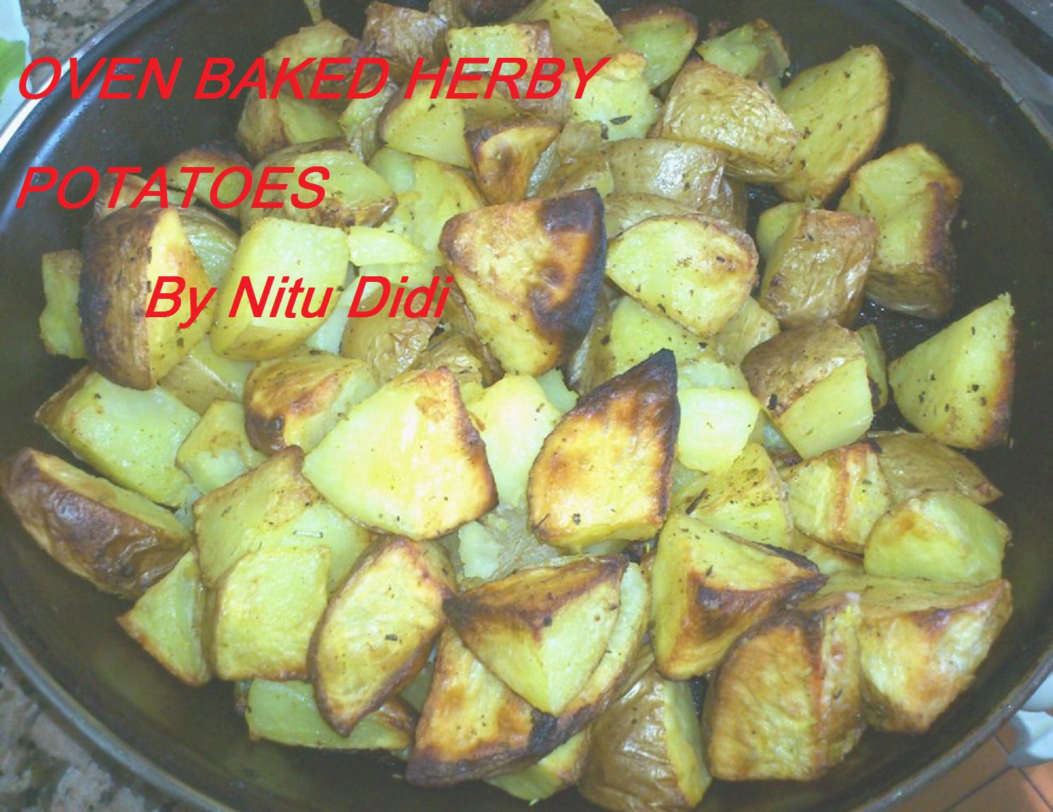 Oven baked potatoes are an excellent substitute for french fries. It also makes a nice side dish with meat or fish or even sauteed vegetables. I like to make them because its soo easy. just scrub, cut and sprinkle herbs on the potatoes and put them into the oven and forget about them for a while!!!!!