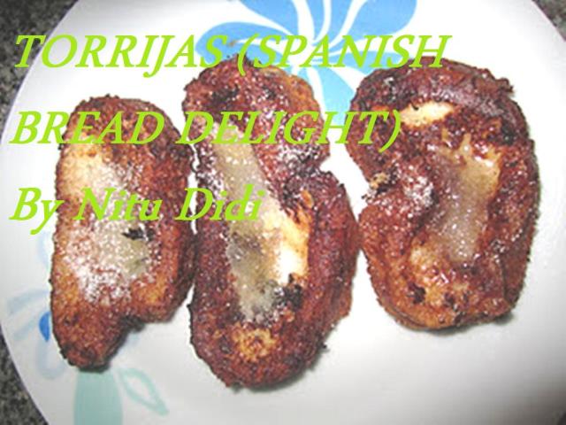 “TORRIJAS” are a common sight in a spanish home. Its made of a few days old bread soaked in milk and then fried. Its an all time tea time favourite and very easy to make. In Spain they are also a sight in the bakeries. Its best eaten hot with a lovely cup of tea, coffee or hot chocolate. If you have some left over baguette do try this out and let your family enjoy a nice different treat.