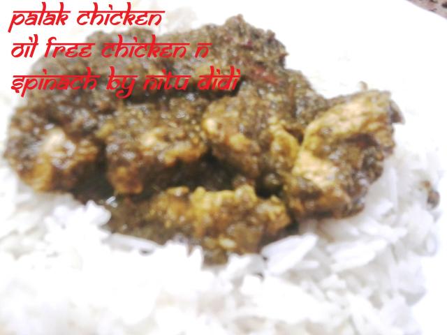 A non fat desi style chicken cooked in spinach? Is it possible? Ofcourse!! Why ever not? It just takes a bit of thinking on how to create something without any oil !!