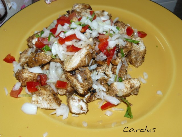 I followed my recipe to the “T” but before putting the chicken tikkas into the creamy non fattening sauce i suddenly had an idea!