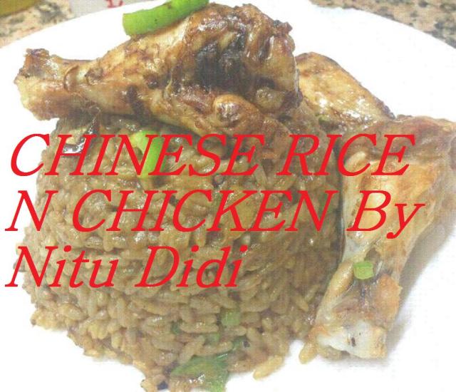 Before starting with the rice put the chicken wings in the oven and bake till golden brown without salt. Once they are browning add some soya sauce, some green chillies, grated ginger , sesame oil and vinegar. Toss the wings so they get coated well and return to the hot oven for a few mintues till well browned.
