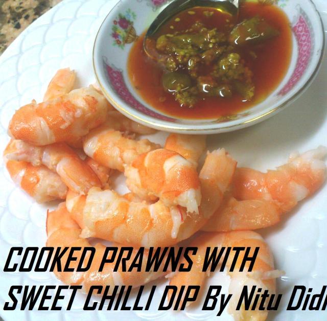 Anyways…what could i do with soo many prawns which were boiled? The first thing that came to my mind was a prawn cocktail. So i made that and there were soo many remaining that i served some just peeled with a sweety chilli sauce dip.