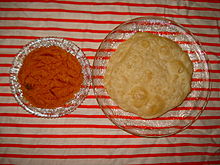 The halwa can be made from whole wheat or white flour (maida) and the same goes for the pooris.