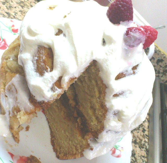 I then topped it with canned sweetened whipped cream and a few raspberries.