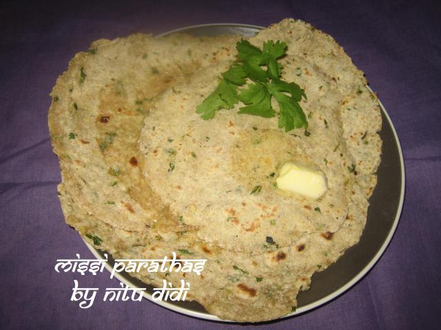 I dont know if this happens with you , but in my home sometimes the left overs are just not wanted. I crack my brains trying to think of what to do with left over daal, potatoes desi style and even batter. I try to cook enough food that theres no left overs but sometimes it just cant be helped. So today lets make something out of left over daal…You need a little thickish daal for this recipe. I have used left over yellow makhani daal but you can use any kind of daal. Just make sure the daal is thick. If you want to try this recipe and dont have left over daal dont worry…just boil some daal (lentils) with turmeric powder and add salt. Then heat up some ghee/butter and add some chopped garlic and ginger and then the daal and let it all simmer. Now that you have your daal..shall we make some lovely missi parathas out of it? Missi parathas are best eaten for breakfast in india with pickle , or tea or/and a bowl of yogurt.