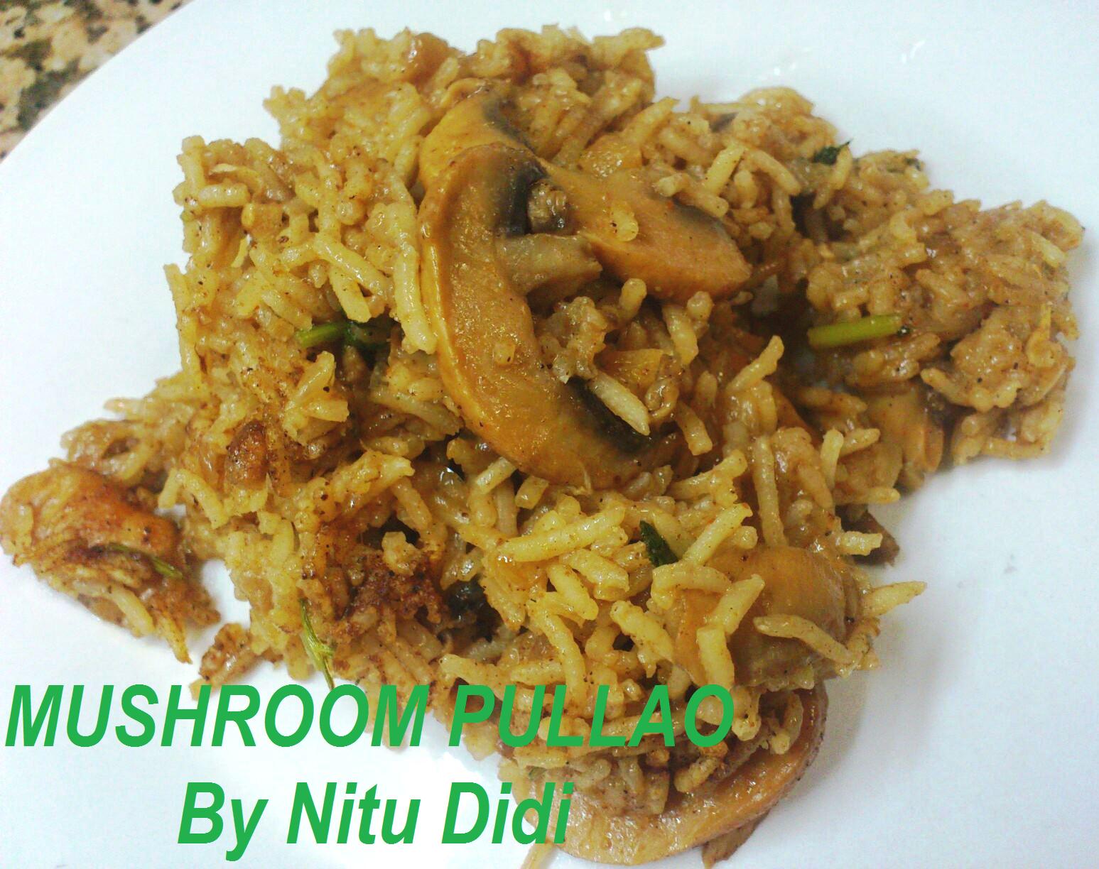 This is a must for all mushroom lovers. A one dish meal which is nourishing and delicious. I used olive oil to make this and the result was amazing. Its easy to make, can be served in parties instead or an ordinary vegetable biryani and just needs a simple raita or a salad to go with it. I made it really spicy with a lot of spices and red chilli powder, but it can be made with less spices too.