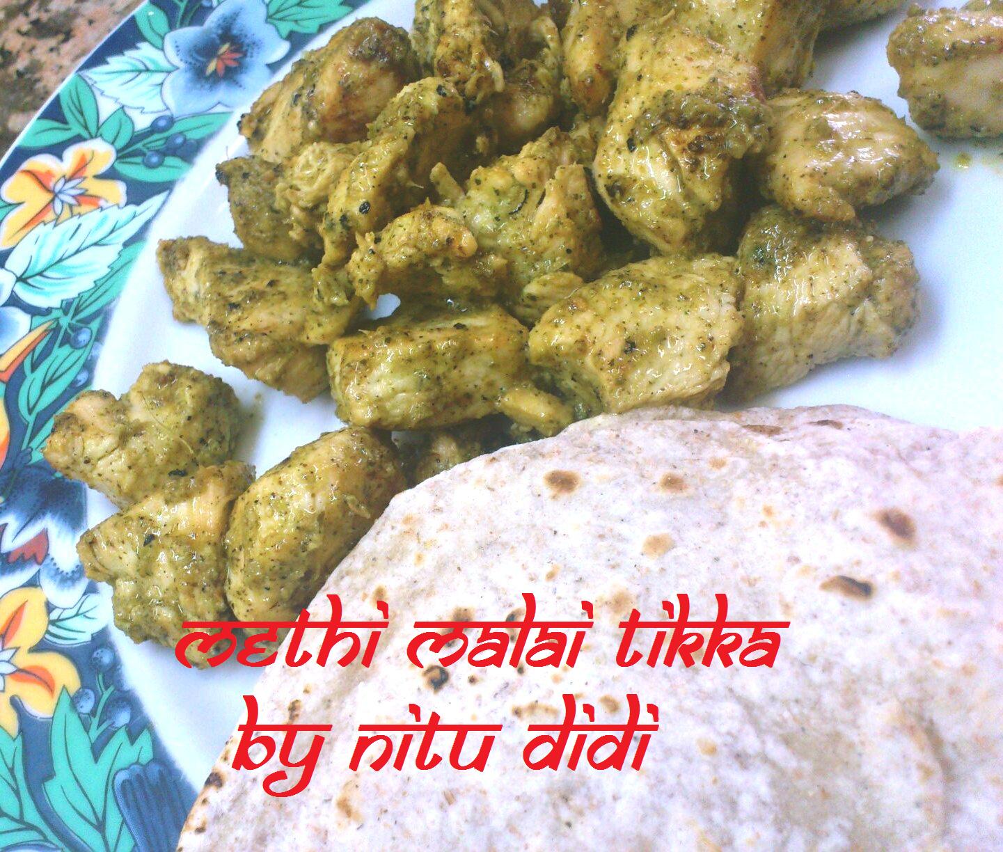 Methi Malai Tikka is what i wanted to call it…. so out with my amazing bullet…a few ingredients..and i had a lovely tikka for lunch…with 2 rotis 🙂