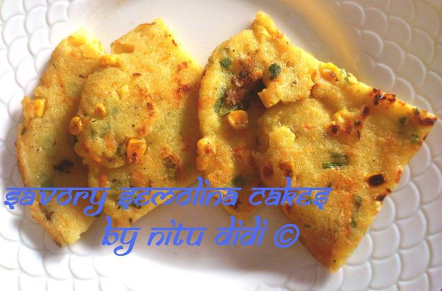 These semolina cakes (something similar to rawa dosa) is what i taught in my cooking workshop. They make excellent an excellent breakfast, snack or even a light dinner. You can add finely chopped vegetables to the batter, or have them plain or even stuff them with anything. I tried stuffing them with grated cheese and they were yummy! The batter can be kept for about 2 days so it even makes it convenient to make up extra. You need a good non stick ceramic pan or a crepe pan for the best results.