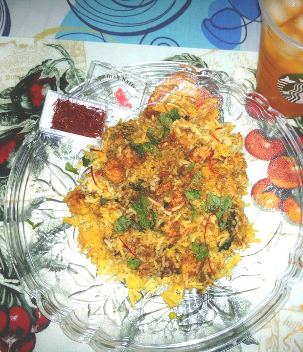 I am so happy to post this recipe today ! My follower Hitesh Chandani won some of my lovely saffron in a giveway therought http://www.masalaminds.com. He made this chicken biryani and was kind enough to send me the pic and the recipe. I know how many of you just love a good biryani so here is an excellent recipe.