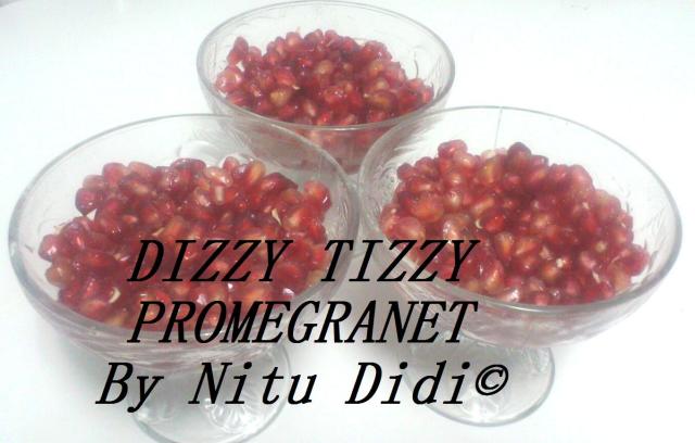 Put the pomegranet kernels in a bowl and mix with some orange juice, a bit of sugar to taste and then a good splash of sweet wine or alcohol free wine or some grapejuice. Let it rest covered in the fridge for an hour and then serve.