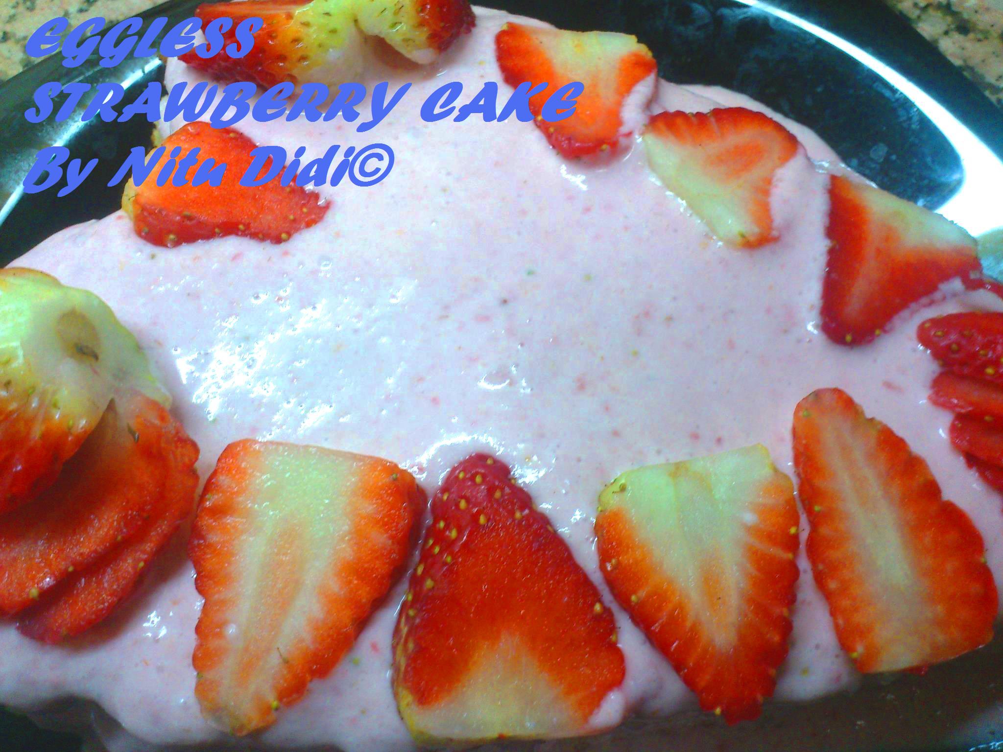 I first put the cream cheese and half the sugar into my bullet and pulsed it till fluffy. About 2-3 pulses. I removed it and kept it aside. I then put the chilled cream and the other half of the sugar and pulsed it for about 6-7 times till the cream gets fluffy. I then added the chopped strawberries and pulsed it till it was well blended and looked like a lovely pink cream. I then mixed the pink cream with the cream cheese by hand till well blended. I left it in the fridge to cool. I then sliced my cake in half carefully while saying a prayer for it to be perfect. I sandwiched it with this lovely pink cream and carefully put the other layer of cake on the top saying another prayer. Then i pressed it gently and spread the rest of the cream on top of the cake and on the sides. I then cut a few strawberries into slices and tried to “decorate” the cake. Thats it! Phew…i then thanked the lord that i could actually get a decent looking cake that tasted out of the world π