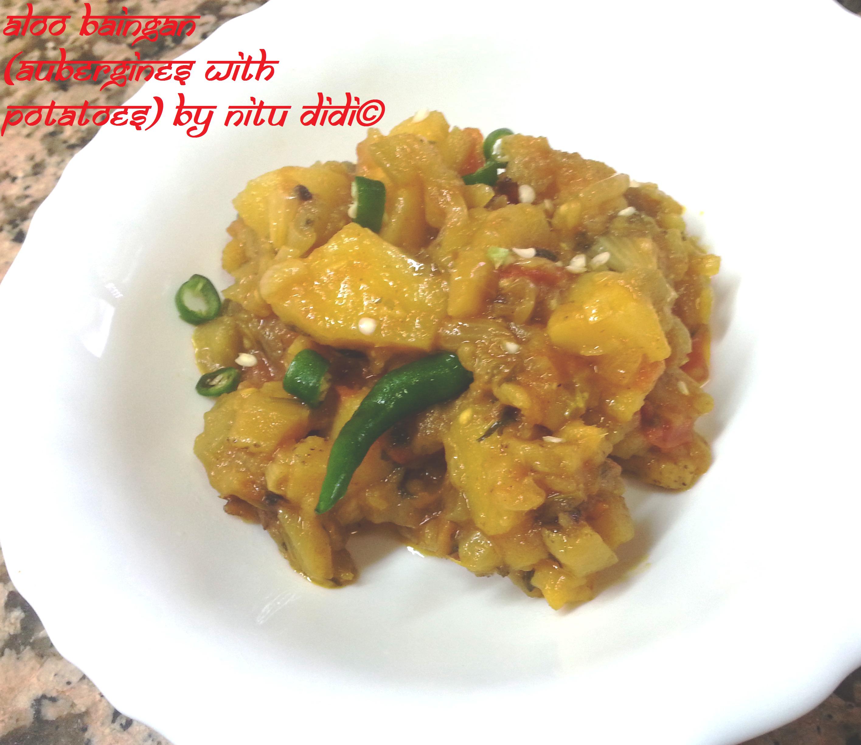 Many people do not like aubergine and some do…So what if you love it and your partner does not? Have you ever thought of camouflaging it ? I do it all the time!!! Shhhh…its a secret…please do not tell anyone! You see my husband loves potatoes, but they are not exactly good to eat everyday so when we are vegetarian i do try to make some of his favorite vegetables. I like aubergine, so i thought of disguising it as onions in this dish and guess what??? He could not even tell!!! In fact he told me it tasted amazing ! This is a very easy recipe and goes well as a side dish with any fish , chicken or meat or even part of a vegetarian meal with daal (lentils) or just on its own with rice, naans roti etc.